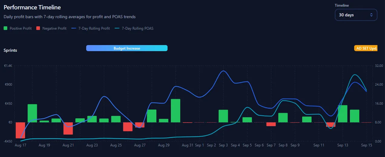 - POAS: 1.2x → 1.8x (+50% parannus)